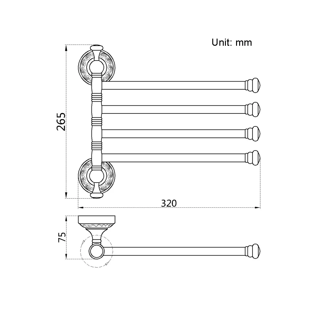 - Vintage Handdoek Rekken Messing Wall Mount 3-6 Actieve Bars Draaien Rail Handdoek Houder Sjaal Kleden Hanger Badkamer Plank home Decoratie